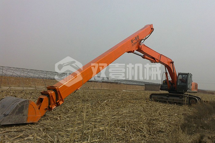 雙壹公司備有多臺長臂挖掘機,15-200米各種長度,一站式解決您的深坑挖掘難題。