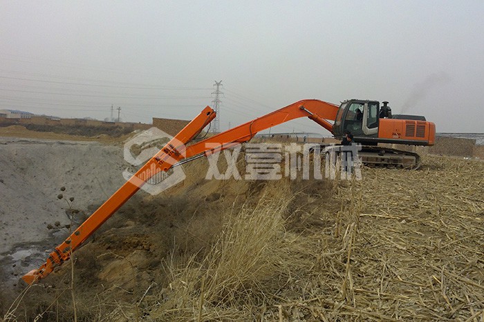 超長四節(jié)臂:總長度可達48米,臂內(nèi)可再伸出3節(jié),施工深度42.5米,配帶貝殼斗1.8立方或挖掘斗1.0立方。