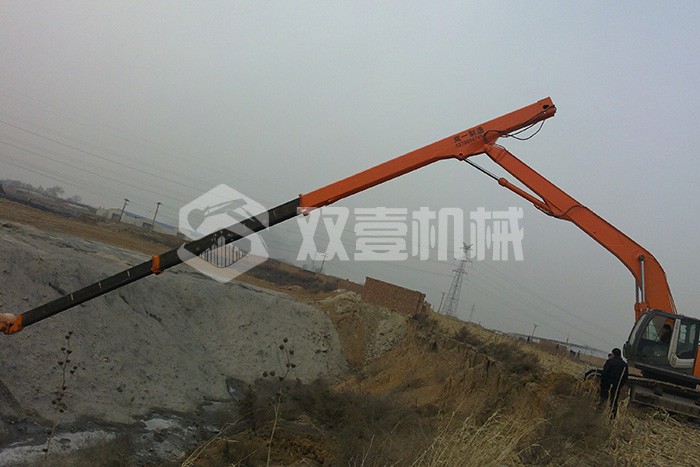 超長四節臂:總長度可達48米,臂內可再伸出3節,施工深度42.5米,配帶貝殼斗1.8立方或挖掘斗1.0立方。