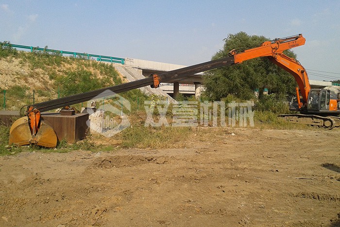 超長(zhǎng)四節(jié)臂:總長(zhǎng)度可達(dá)48米,臂內(nèi)可再伸出3節(jié),施工深度42.5米,配帶貝殼斗1.8立方或挖掘斗1.0立方。