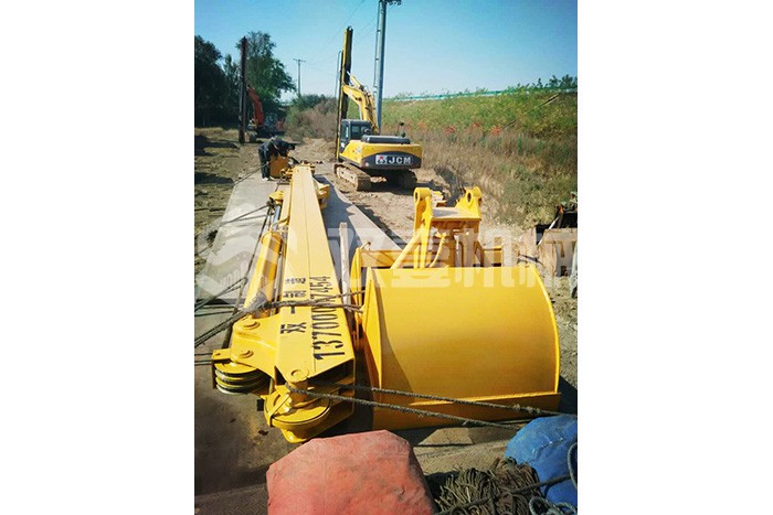 超長四節(jié)臂:總長度可達48米,臂內(nèi)可再伸出3節(jié),施工深度42.5米,配帶貝殼斗1.8立方或挖掘斗1.0立方。