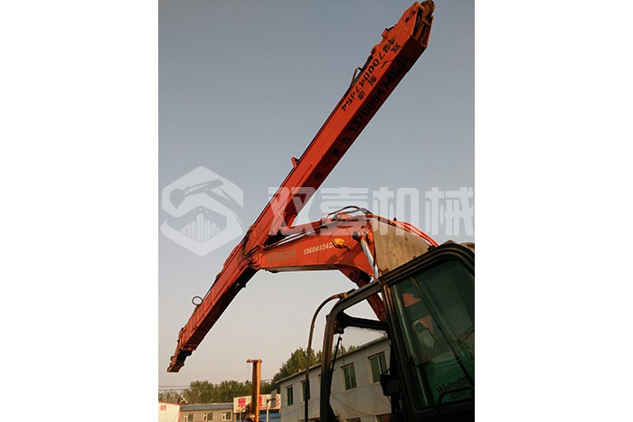 三節臂:25T級挖掘機三節臂可挖深24米,35T級挖掘機三節臂可挖深32米;臂體采用700L或960高強度板材,滑輪安裝結構在臂外部,便于保養維修,結構設計尺寸大,延長使用壽命。