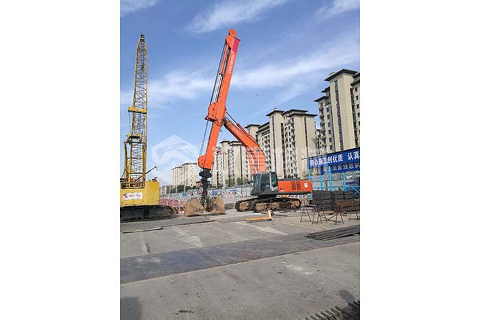 超長四節臂:總長度可達48米,臂內可再伸出3節,施工深度42.5米,配帶貝殼斗1.8立方或挖掘斗1.0立方。