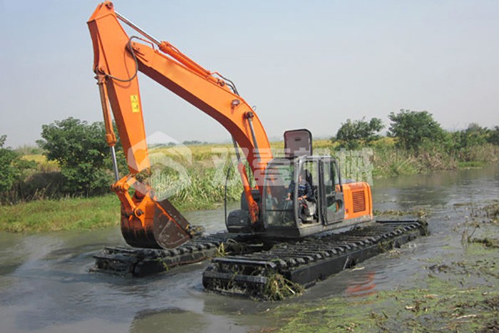水陸兩用挖掘機浮箱:普通挖掘機安裝浮箱后,可在水面和淤泥中作業,河道清淤、濕地沼澤治理、江、河、湖、海灘的環境整治及魚池的清理。